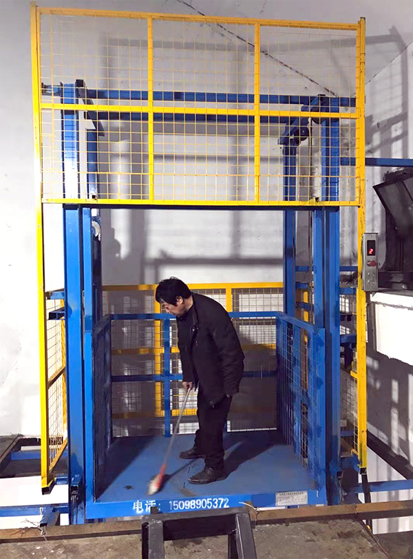 浙江海鹽鮑總采購的這款1噸升降貨梯的尺寸是1500*1100mm,載重1000kg,提升高度是3500mm,這個(gè)現(xiàn)場(chǎng)環(huán)境是在原有車間加層后,改為倉庫的一個(gè)安裝環(huán)境,從1500mm單方向進(jìn)出。